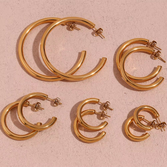 Hypoallergenic Tarnish Free Stainless Steel Hollow Tube Large Medium Small Size Gold Plated Hoop Earrings for WomenRegular price From $6.85 USDRegular priceUnit price per$0.00 USDSale price From $6.85 USDSold out